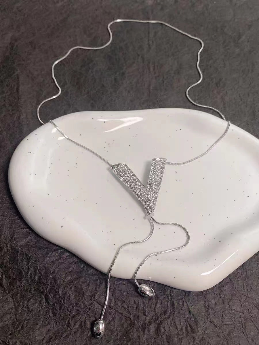Adjustable Silver V-Letter Clavicle Chain Necklace